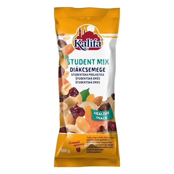 mazsola (finomított napraforgó olaj vagy gyapotmagolaj /nem hidrogénezett/) | pörkölt, sótlan földimogyoróbél (növényi olajok és zsírok /napraforgó, pálma, repce/) | mandulabél | kesudióbél | aszalt sárgabarack (antioxidáns: kén-dioxid) | törökmogyoróbél | cukrozott, aszalt vörös áfonya (cukor, finomított napraforgó olaj).