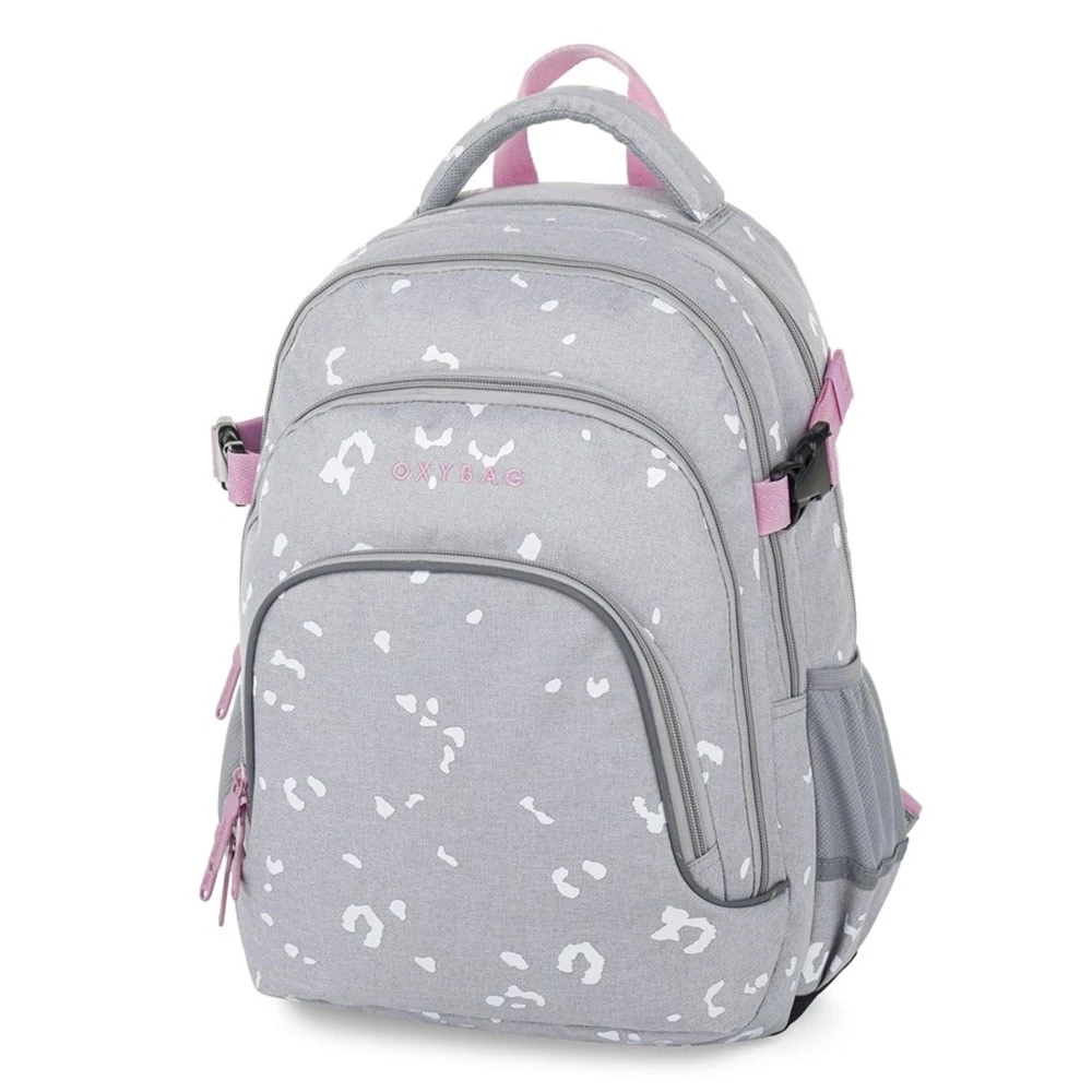 Az OXY Scooler hátizsák ideális választás 3. osztálytól azoknak, akiknek minden fontos dolognak helyet kell találniuk. A háromrekeszes kialakítás bőséges teret kínál tankönyveknek, füzeteknek és uzsonnának. Beépített rendszerező, belső zseb és laptoprekesz is található benne. Az oldalzseb tökéletes kulacsnak, a kulcs- vagy chip-tartó pedig megkímél a keresgéléstől. Az anatómiailag formázott, légáteresztő hátrész, az állítható vállpántok és a mellkaspánt hosszabb viselésnél is kényelmet biztosítanak. A megerősített, vízálló alj védi a tartalmat a nedvességtől, a fényvisszaverő elemek pedig növelik a biztonságot. Űrtartalom: 28 l, teherbírás: 8 kg.