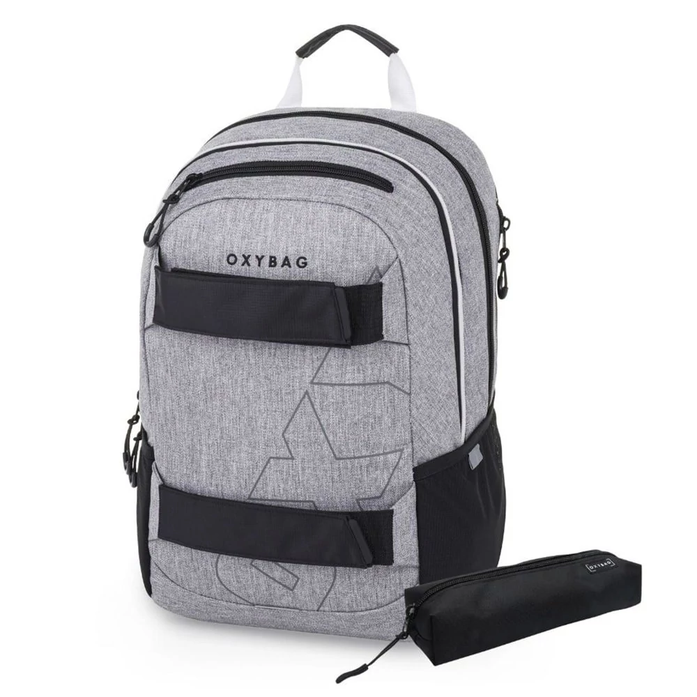 Kiváló szett hátizsákkal és diák tolltartóval. Az OXY SPORT sorozat iskolai és szabadidős hátizsákja ergonomikusan formázott hátrésszel, állítható, párnázott vállpántokkal és mellkaspánttal rendelkezik, így kényelmes viseletet biztosít. Két fő rekeszből és egy kisebb, elülső zsebből áll, erős cipzárakkal és praktikus húzófülekkel. Belül megerősített laptopzseb, kulcskarabiner, kisebb zseb apróságoknak, valamint rejtett zseb található a hátrésznél. Oldalzseb kulacsnak és több fényvisszaverő elem a jobb láthatóságért. Ideális másodikos iskolásoknak, illetve diákoknak és felnőtteknek szabadidős használatra. Űrtartalom: 24 l, teherbírás: 8 kg.