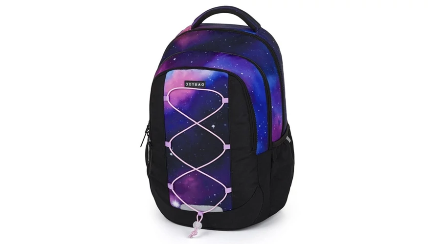 Az OXY Touch hátizsák ideális választás 3. osztálytól. Háromrekeszes kialakítása bőséges helyet biztosít tankönyveknek, füzeteknek, uzsonnának és egyéb szükséges felszereléseknek. A fő rekeszben laptopzseb található, az elülső zsebben pedig rendszerező és kulcskarabiner. Az oldalzsebben kényelmesen elfér egy kulacs. Az anatómiailag formázott, légáteresztő hátrész, valamint az állítható váll- és mellkaspántok kényelmes viseletet biztosítanak teljes terhelés mellett is. A megerősített, vízálló alj védi a tartalmat a nedvességtől, a fényvisszaverő elemek pedig növelik a biztonságot. Az elején praktikus gumipánt található, amely alá például egy vékony pulóver rögzíthető. Űrtartalom: 25 l, teherbírás: 8 kg.