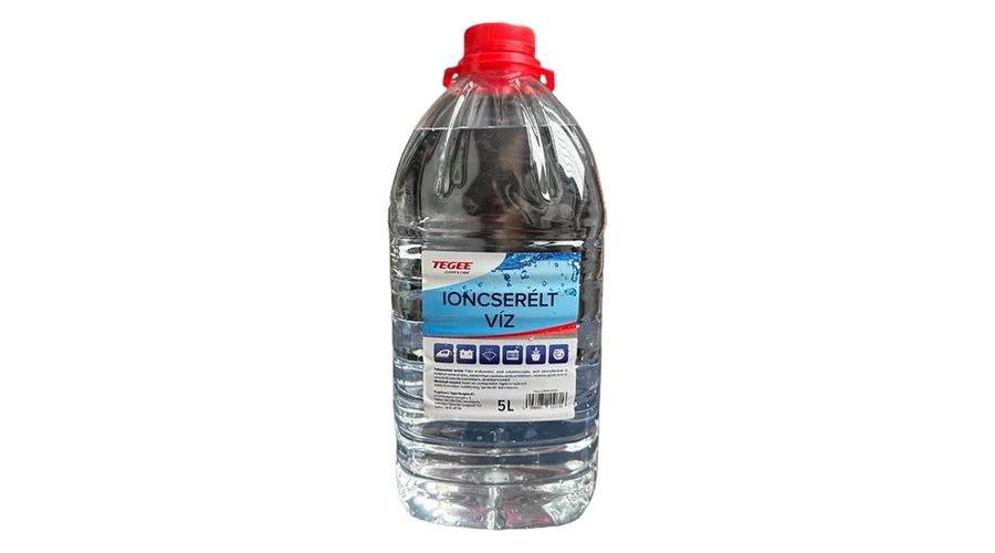 Ioncserélt víz 5 literes kiszerelésben, PET palackban.
