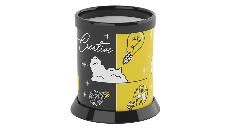 Kreatív motívummal díszített henger alakú, asztali írószertartó.