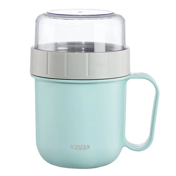 A hordozható bögre poharában és a felső tartályban tárolt étel a szállítás során nem keveredik össze.