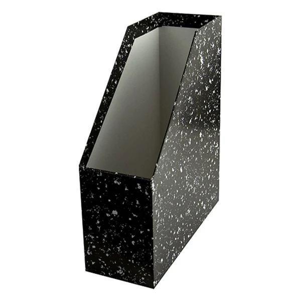 Kívül egyszínű, fóliázott, belül fehér papír borítású, kemény, merev falú, környezetbarát kartonlemezből készült irattartó papucs, 90 mm-es gerincszélességgel. Formatervezett, modern stílusú, feliratozható. Az alacsony oldalmagasság lehetővé teszi feliratozott CD-k tárolását is.