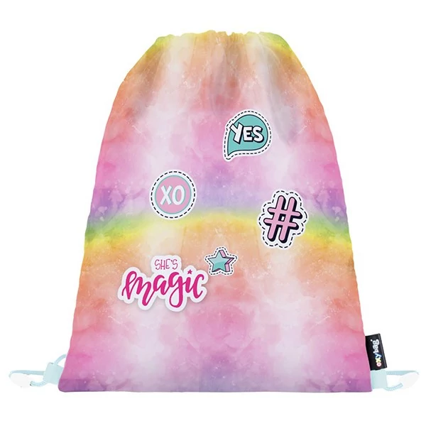 Praktikus tornazsák tornacipő vagy iskolai papucs tárolására. A zsinórok meghúzásával könnyen zárható, és a háton is viselhető, mint egy hátizsák, vagy rögzíthető az iskolatáskára. Könnyű és strapabíró, 100% poliészter anyagból készült.