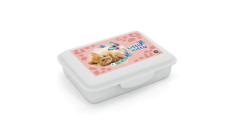 Gyermek műanyag uzsonnás doboz aranyos mintával és kivehető elválasztó rekesszel, amely segít külön tartani az ételeket. Ideális iskolai tízóraira – a kisiskolások imádni fogják! Mosogatógépben könnyen tisztítható, melegítéshez pedig mikrohullámú sütőben használható, ha a fedőt nyitva hagyja.